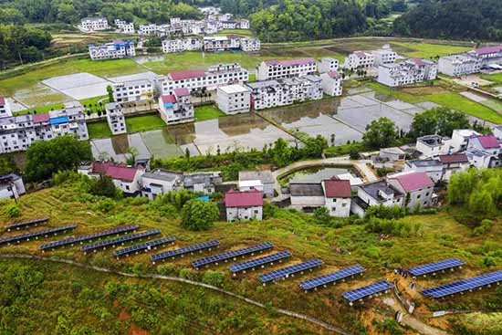 Photo montrant la centrale photovolta?que de lutte contre la pauvreté du village de Jieling, dans le canton de Miduo du comté de Taihu, à Anqing, dans la province de l'Anhui. Photo prise le 8 mai. (Zheng Xianlie / Pic.people)