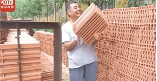 Le 15 mai, dans une usine de tuiles de Zibo, oncle Zhao, originaire de Linyi, dépla?ait des tuiles. Il a 58 ans et travaille dans l'usine de tuiles depuis 20 ans, son salaire mensuel est de 3 000 yuans et il travaille 12 heures par jour. Une tuile pèse environ trois livres et demi, et en prendre une dizaine dans ses mains lui fait porter environ trente ou quarante livres. Après une journée, oncle Zhao aura déplacé plus de 30 000 livres, ou 15 tonnes, de tuiles.