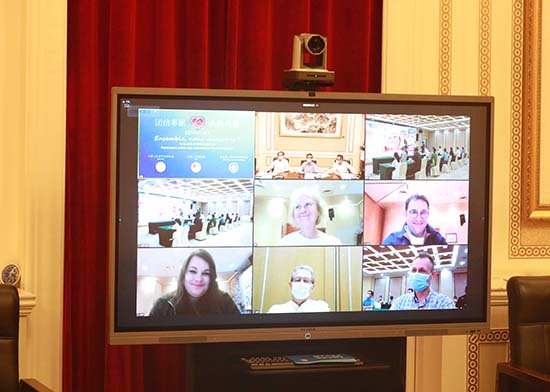 La vidéoconférence des volontaires franco-chinois dont le thème est ? Ensemble, nous vaincrons ? s'est tenue le 16 juin par liaison vidéo à Beijing, Wuhan et Paris. Les volontaires ont partagé leurs histoires et leurs expériences dans la lutte contre l'épidémie en Chine et en France, ce qui a renforcé ainsi la compréhension mutuelle et l'amitié.