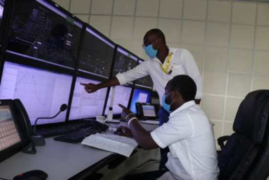 Les répartiteurs de train locaux sont en train de travailler dans le centre de contr?le de la circulation ferroviaire de la société de gestion de la ligne Mombasa-Nairobi. (Photo par la société kenyane de gestion de la ligne ferroviaire Mombasa-Nairobi)