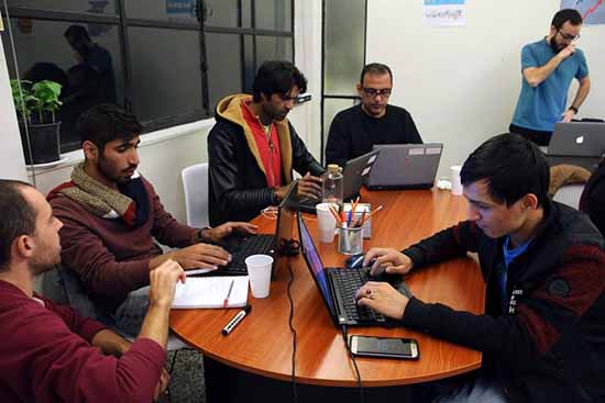Des jeunes acquièrent des apprentissages en développement de l'Internet à l'Académie des hackers sociaux d'Athènes, en Grèce, le 24 janvier 2018. (Marios Lolos / Xinhua)