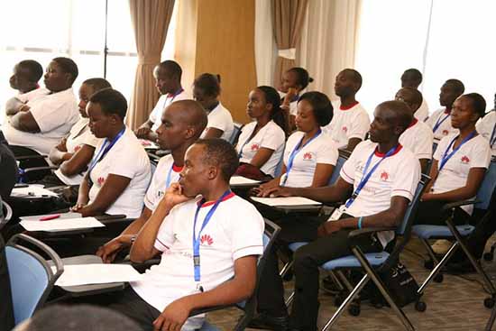 Des dipl?més suivent les procédures lors de la remise des dipl?mes du programme ? Compétences digitales pour la vie Huawei ? à Nairobi, capitale du Kenya, le 26 avril 2017. (Charles Onyango / Xinhua)