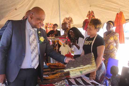 Le ministre adjoint du développement des jeunes, des sports et de la culture du Botswana, Dikgang Makgalemele (à gauche), visite un centre de formation professionnelle au camp de réfugiés de Dukwi, au Botswana, le 20 juin 2018 (Shingirai Madondo / Xinhua)