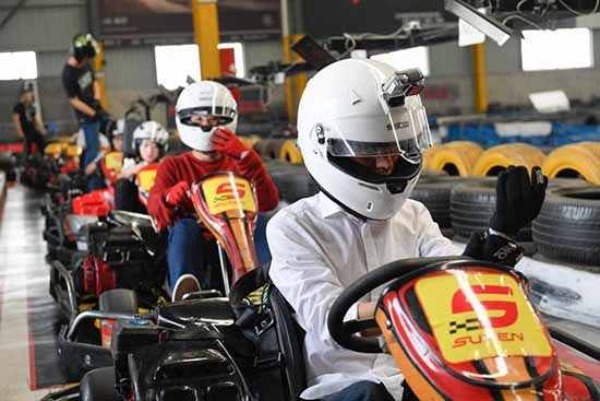 Des membres d'une équipe de course FSAE de l'Université sud-centrale (CSU) re?oivent une formation dans un club de karting de la ville de Changsha, capitale de la province du Hunan (centre de la Chine), le 2 mai 2018 (Zhang Xiaoyu / Xinhua)