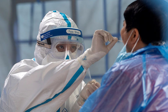Le 18 juin, des personnels soignants effectuent le prélèvement oro-pharyngé pour des personnes à un point de test de l'arrondissement de Haidian à Beijing. (Weng Qiyu/Pic.people)