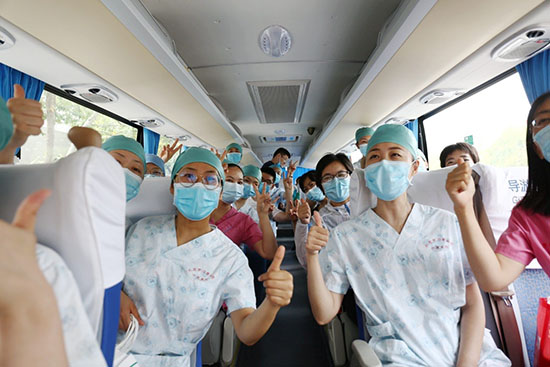 à midi le 26 juin, conformément aux dispositifs et à la demande de Beijing, l'arrondissement de Shijingshan a envoyé en urgence 100 personnels médicaux à Fengtai pour apporter l'aide. (Yu Huiying/Pic.people)