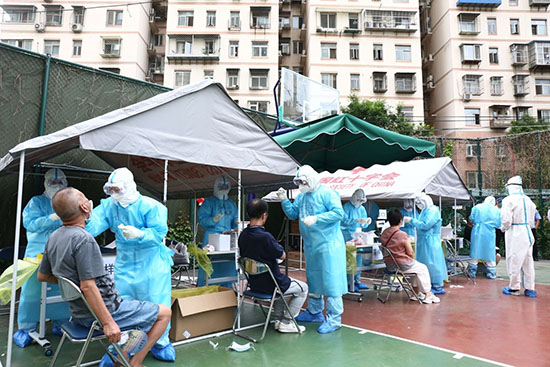 Des équipes médicales envoyées par l'arrondissement de Shijingshan ont commencé à travailler immédiatement après l'arrivée aux points de test à Fentai. (Yu Huiying/Pic.people)
