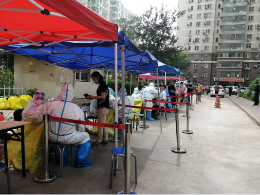 Le 28 juillet, des habitants effectuent le test d'acides nucléiques dans le quartier Tiantongyuan de l'arrondissement de Changping à Beijing. (Du Jianpo/Pic.people)