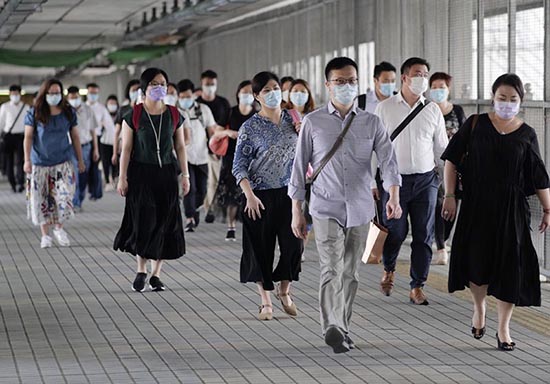 Des personnes portant des masques sortent d'une station de métro de la région administrative spéciale de Hong Kong (sud de la Chine) le 13 ao?t 2020. (Photo / Xinhua)