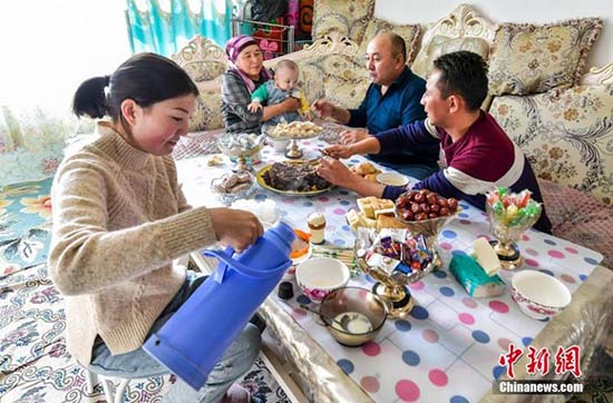 Les habitants réinstallés vivent heureux dans leur maison à Altay, dans la région autonome ou?ghoure du Xinjiang (nord-ouest de la Chine).