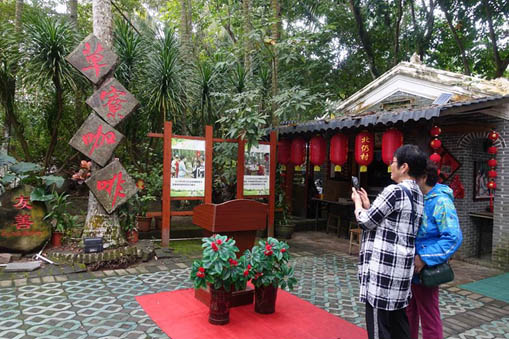 Photo prise le 13 décembre montrant des visiteurs qui prennent des photos devant le café Caoliao dans le village du Beinai (Photo : Wang Xiaoxia)