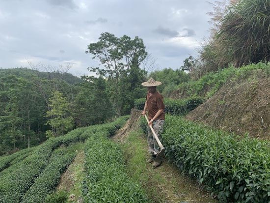 Un agriculteur travaille dans une plantation de thé dans le canton de Xiadang, à Ningde, dans la province du Fujian (sud-est de la Chine). (Photo fournie au China Daily)