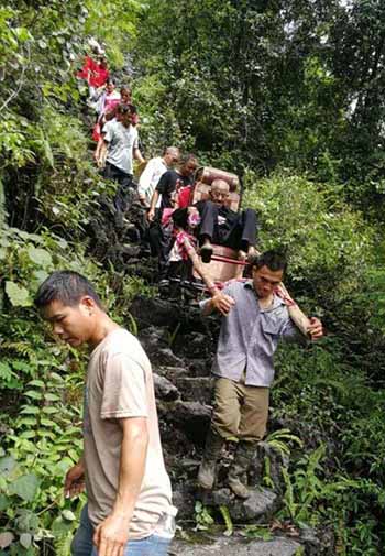 Si la terre ne peut pas nourrir les gens qui y vivent, comment faire ? Le gouvernement du district de Huanjiang a adopté la méthode de la relocalisation pour mobiliser les villageois afin de quitter les montagnes. Le 11 septembre 2019 est la date mémorable où Tan Yunri et son fils quittaient les montagnes. Considérant que l'homme avait un age avancé et que la route était trop longue et difficile, les cadres ont spécialement con?u et fabriqué une simple chaise à porteurs pour transporter le vieil homme hors des montagnes à tour de r?le. Ce jour-là, le vieil homme était très heureux et est monté dans une voiture pour la première fois de sa vie, après avoir descendu la montagne.