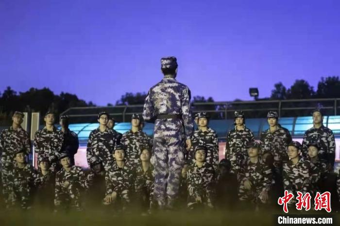 La photo montre que les étudiants à l'école supérieure des Finances et de l'économie de Ningbo acceptent la formation militaire.