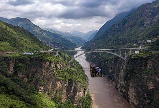 à cause des montagnes et des rivières, les habitants des régions montagneuses avaient beaucoup de mal à se déplacer. à la veille de la fondation de la Chine Nouvelle, de nombreux habitants des montagnes du sud-ouest du pays devaient se servir de faucilles pour ouvrir des routes et pour traverser les rivières, ils devaient prendre le téléphérique.