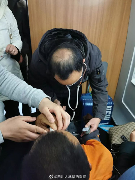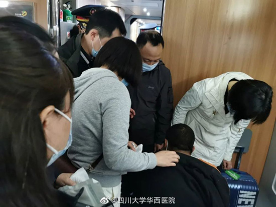 Le 28 avril, sur le train à grande vitesse D1925 reliant Yan'an, dans la province du Shaanxi (nord-ouest de la Chine) à Chengdu, la capitale de la province du Sichuan (sud-ouest de la Chine), le nez d'un passager s'est mis à saigner abondamment. La situation étant urgente, les membres du personnel du train ont cherché anxieusement des médecins à bord. Heureusement, 55 travailleurs médicaux de l'h?pital Huaxi de l'Université du Sichuan étaient également des passagers.