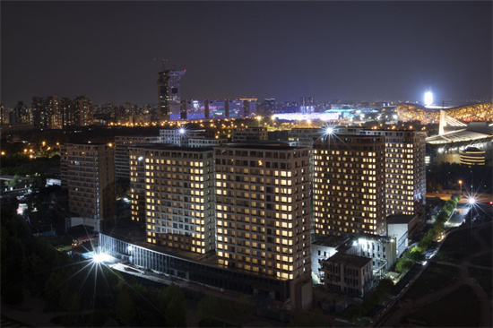 Une vue extérieure achevée du village olympique d'hiver de Beijing. (Photo / Bureau de la construction des grands projets de Beijing)