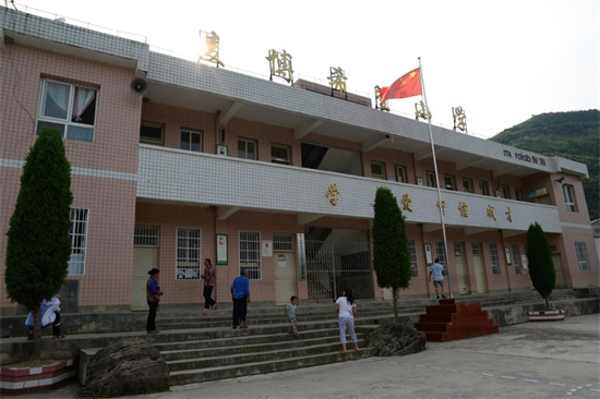 Une photo prise le 26 juin 2016 montre une école primaire du village de Caowangba, à Zunyi, dans la province du Guizhou, au sud-ouest de la Chine. Initiée à l'origine par Huang Dafa, l'école garantissait l'éducation primaire de 100 enfants dans le village lors de sa création. Ces dernières années, l'école a été modernisée et transformée grace à des investissements d'entreprises. (Luo Xinghan/le Quotidien du Peuple en ligne)