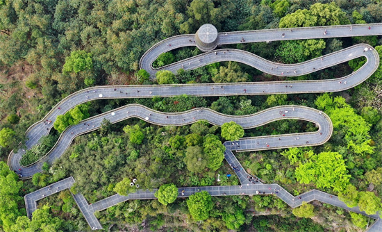 Une vue aérienne de Fudao, une voie verte piétonne sinueuse à Fuzhou, capitale de la province du Fujian (est de la Chine). (Photo / China Daily)
