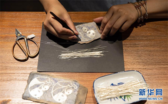 Dans la ? Cour du patrimoine culturel immatériel de Kuanzhai ? de la Rue Kuanzhai à Chengdu, un artisanat démontrait ses compétences en filigrane d'argent, le 13 juin 2020. (Photo / Xinhua)