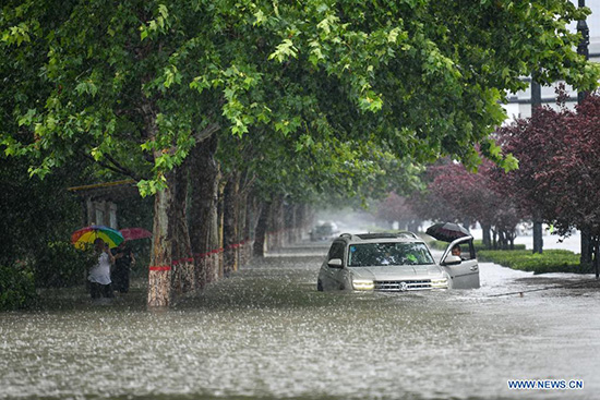 Une voiture est inondée par les eaux à Zhengzhou, capitale de la province du Henan (centre de la Chine), le 20 juillet 2021. (Photo/Xinhua)