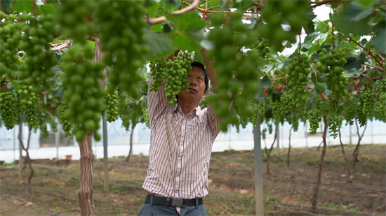 Li Hanlin travaille dans un vignoble d'une plantation qui emploie des personnes handicapées à Nantong, dans la province du Jiangsu (est de la Chine), le 14 juin 2020. M. Li a un léger handicap mental. (Wang Jia / Chinadaily)