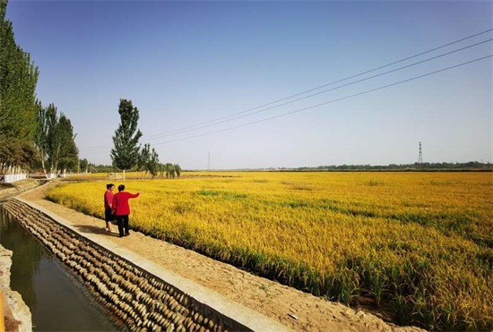 Les rizières du village de Daoxiang, dans le district d'Aksu, dans la région autonome ou?ghoure du Xinjiang (nord-ouest de la Chine). (Photo / Xinhua)