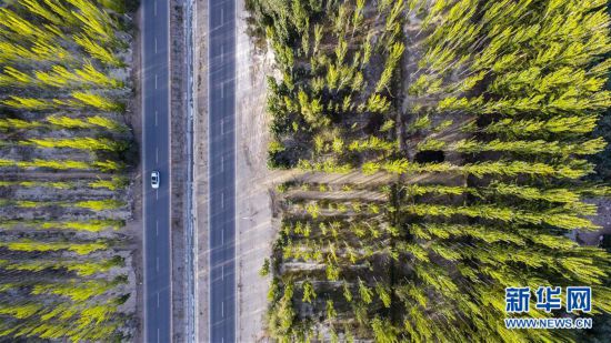 Les forêts au bord du désert de Taklamakan à Aksu dans la région autonome ou?ghoure du Xinjiang (nord-ouest de la Chine). (Photo / Xinhua)