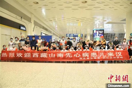 Des enfants atteints d'une cardiopathie congénitale de Shannan, au Tibet, arrivent à Wuhan. (Chen Youwei / China News Service)