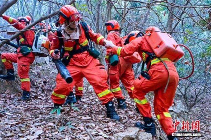Le 5 avril 2021 à midi, les pompiers forestiers de la province du Fujian (sud-est de la Chine) ont éteint toutes les flammes nues d'un incendie de forêt. (Li Yuanhui/China News Service)
