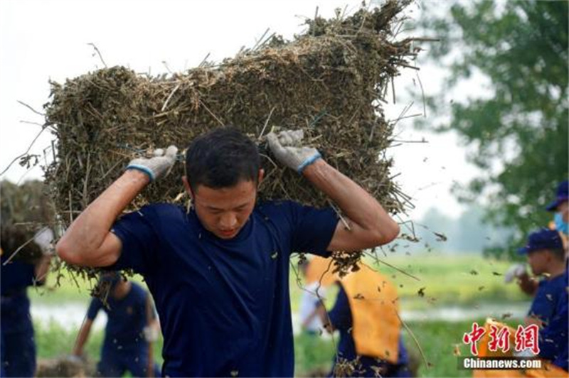 Le 20 juillet 2020, sur une plage fluviale du district de Funan de la ville de Fuyang, dans la province de l'Anhui (est de la Chine), des pompiers ont aidé des agriculteurs à récupérer des absinthes. (photo/des pompiers de Luoyang)