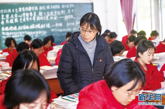 Le modèle Zhang Guimei s'adresse aux élèves du lycée de filles Huaping à Lijiang, dans la province du Yunnan (sud-ouest de la Chine). (Photo/Xinhua)