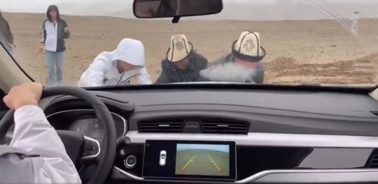 Abdujiapaer Mengde prend une assistance opportune à plusieurs touristes en poussant leurs voitures hors du bourbier. (Photo/Capture d'écran de la vidéo)