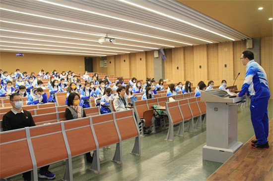 96 volontaires du centre d'appels multilingue suivent une formation à l'Université des études étrangères de Beijing, le 21 janvier. (Photo fournie par l'Université des études étrangères de Beijing)