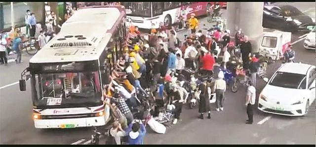 Le 31 mars, dans le district de Haizhu de la ville de Guangzhou, capitale de la province du Guangdong (sud de la Chine), lors de l'heure de pointe, un autobus est entré en collision avec une bicyclette électrique, dont le cycliste s'est retrouvé sous les roues.