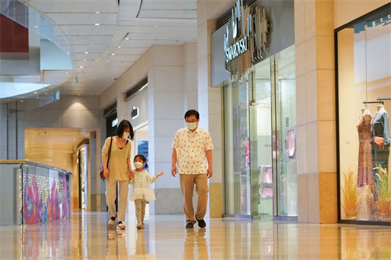 Des gens dans un centre commercial de l'arrondissement de Chaoyang, à Beijing, capitale chinoise, le 29 mai 2022. (Xinhua/Chen Zhonghao)