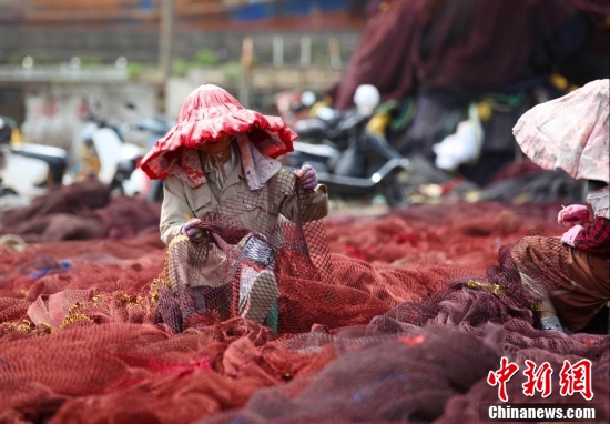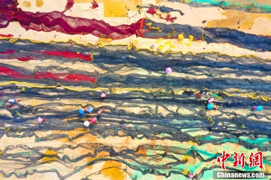 Depuis le 1er mai, qui marque le début du moratoire estival sur la pêche, les pêcheurs de Wenling réparent leurs filets et entretiennent leurs bateaux pour se préparer à la pêche après le moratoire. Des photos aériennes montrant cette scène ressemblent à des peintures à l'huile.