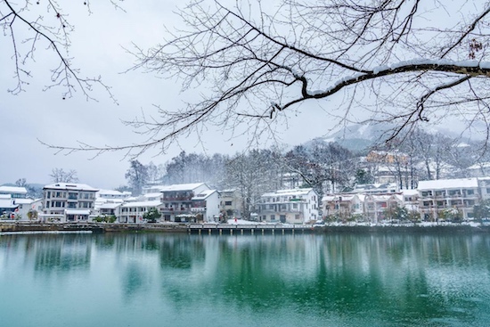 Le 18 février 2022, la photo montre le village de Zhinan du bourg de Taihuyuan de l'arrondissement de Lin'an de la ville de Hangzhou de la province du Zhejiang (dans l'est de la Chine) après la neige. (Wang Yuebo / Pic.people.com.cn)