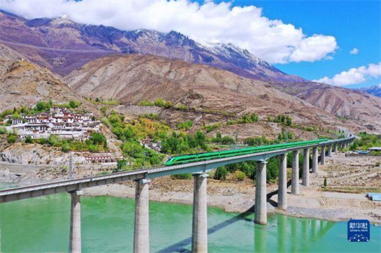 Après la mise en service du chemin de fer Qinghai-Tibet, le chemin de fer Lhassa-Shigatse a été lancé en ao?t 2014. La ligne Lhassa-Nyingchi, le premier chemin de fer électrifié au Tibet où circulent des trains à grande vitesse Fuxing, a quant à elle été mise en service l'année dernière.