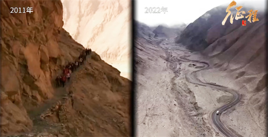 Sur ce trajet vers l'école enregistré par CCTV, il y avait 42 enfants dans un groupe de plus de 70 personnes, le plus jeune ayant seulement 6 ans. Ils ont passé une falaise de 500 m de long et de 300 m de haut, dont la partie la plus étroite ne pouvait tenir qu'un demi-pied, avec la rivière Yarkant dévalant juste en dessous. Pendant tout le trajet, les mains des adultes ont formé le chemin des enfants. A cette époque-là, lorsque le journaliste a demandé aux enfants ce qu'ils souhaitaient, ils ont répondu à l'unisson : ? Nous voulons la meilleure route pour marcher ?.