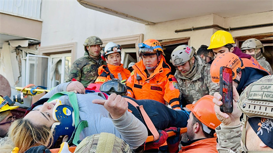 Au soir du 12 février, heure locale, l'équipe de sauvetage chinoise Gongyang avait fouillé 178 batiments effondrés dans 4 villes de la province turque de Hatay, et avait recherché et secouru 9 survivants et 15 victimes directement ou conjointement, soit 24 personnes au total.