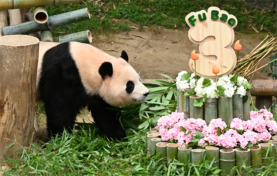 Le panda géant Fu Bao a fêté son troisième anniversaire dans le parc à thème Everland situé en Corée du Sud. (Photo/Xinhua)