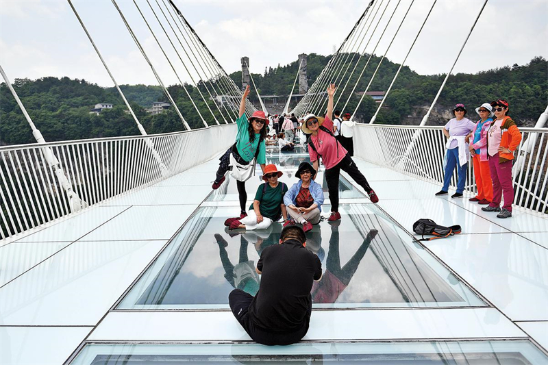 Selon Tian Hongman, directrice adjointe du bureau de la culture, du tourisme, de la radio, de la télévision et des sports de Zhangjiajie, la ville a accueilli plus de 786 000 voyageurs étrangers au cours du premier semestre de cette année, soit une augmentation de 671 % par rapport à la même période de l'année dernière.