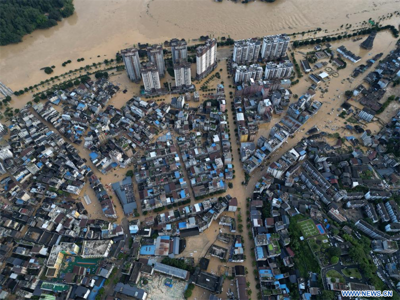 Des inondations sévères ont de nouveau frappé le district de Rongjiang, dans la province chinoise du Guizhou (sud-ouest), incitant les autorités locales à réactiver la réponse d'urgence du plus haut niveau aux inondations, à partir de 12H30 samedi.