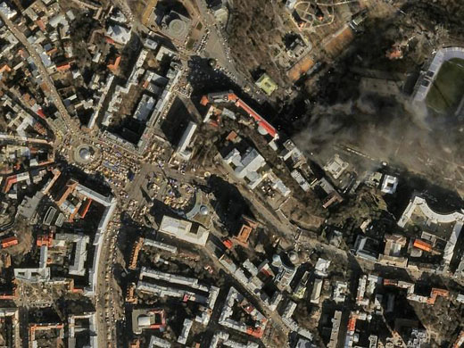 | Une image fournie par Skybox et montrant une manifestation anti-gouvernementale à Kiev, en Ukraine, le 18 février 2014. |