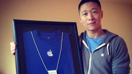 Sam Sung, de Vancouver, au Canada, a travaillé à l'Apple Store de la ville et a mis sa carte et sa lanière aux enchères. Il les propose avec son chandail bleu distinctif des employés - et l'ensemble est encadré sous verre. L'argent récolté ira à une association caritative, la Fondation Children's Wish (Rêves d'Enfants).