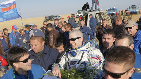 Un Russes et deux Américains ont atterri jeudi matin au Kazakhstan après 5 mois et demi à bord de la Station spatiale internationale. Ils sont revenus dans une capsule russe Soyouz qui a traversé un ciel clair. La NASA a indiqué que tout s'est bien passé ; les membres de l'équipage ont souri et ont bavardé alors qu'ils étaient aidés à sortir de leur vaisseau spatial.