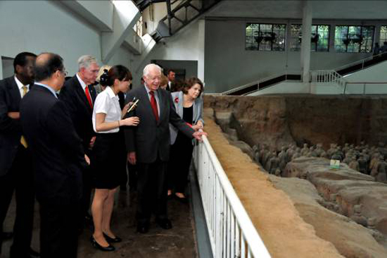 Où : après avoir visité les guerriers et chevaux de terre cuite de Qin, Mme Carter a dit avec enthousiasme : ? C'est un des plus beaux monuments du monde ?. Et lors de son voyage à Xi'an, M. Carter a commenté avec enthousiasme : ? Ce voyage à Xi'an est un des plus intéressants que j'ai faits dans le monde entier ?.