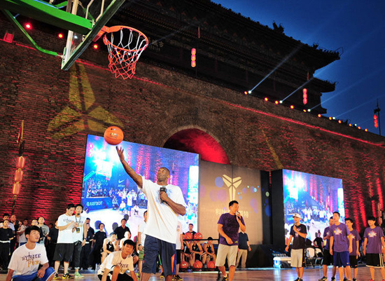 Où : superstar de basketball de la NBA, Kobe Bryant est arrivé dans la ville ancienne de Xi'an. Dans la matinée, il a visité les guerriers de terre cuite, et le même soir à 20h, il a participé à un match de basket au pied des murailles de la ville, où il a commenté en direct et encouragé avec enthousiasme les joueurs avec les spectateurs.
