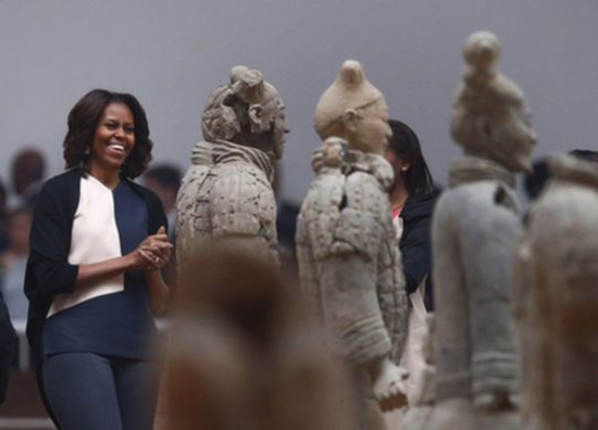 La ? First Lady ? des Etats-Unis, Michelle Obama a effectué une visite d'Etat du 20 au 26 mars en Chine. La ville de Xi'an faisait partie de ce séjour. Elle est venue voir, avec ceux qui l'accompagnent, les guerriers de terre cuite et monter sur la muraille entourant la ville, pour ressentir le charme de l'ancienne capitale. Les journalistes ont constaté que depuis, ces dernières années, nombreux sont les politiciens et célébrités américaines qui sont venus à Xi'an.